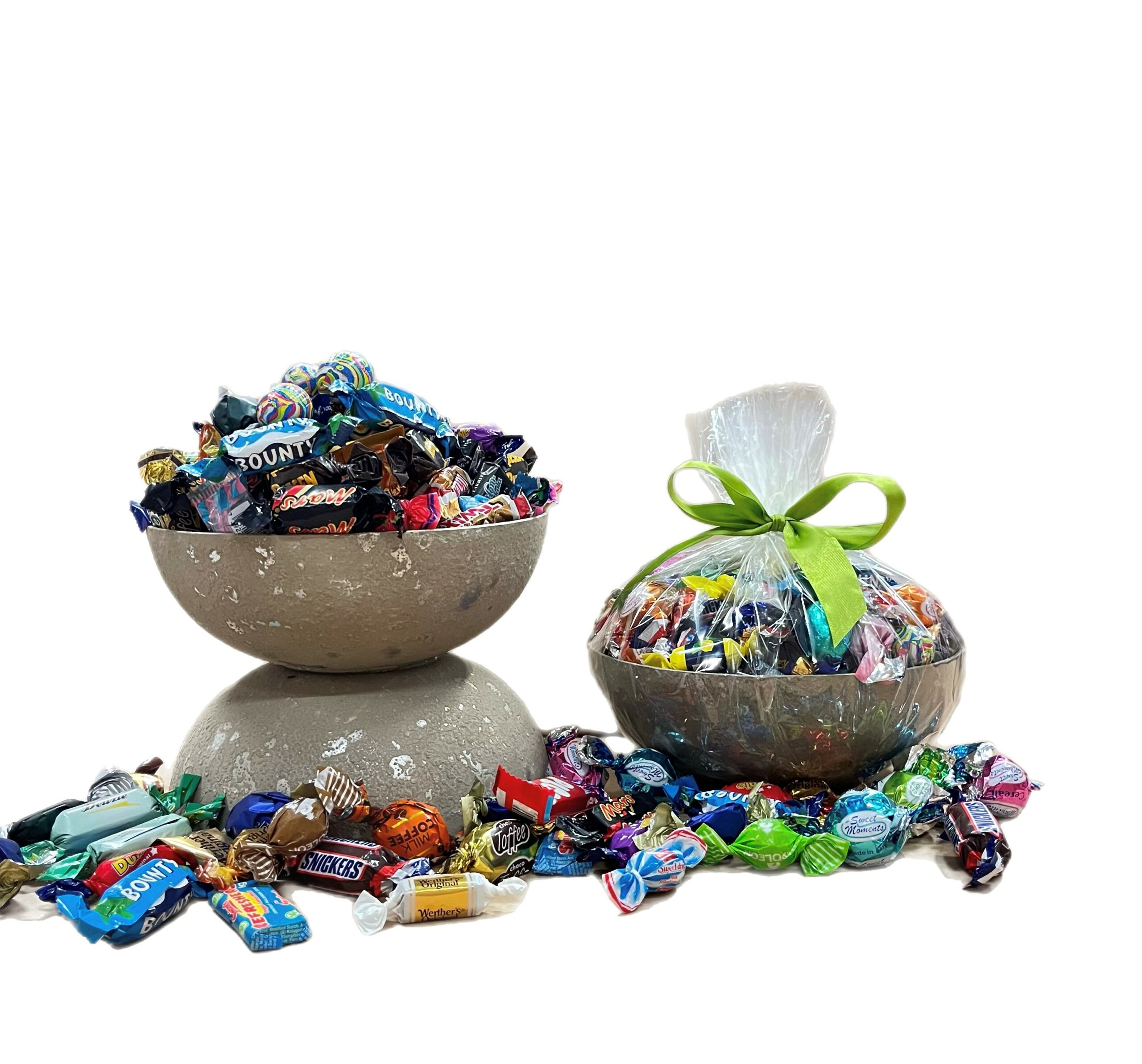Slikskål "skimmer" med 1,4 kg indpakket slik. Med andre ord en virkelig proppet skål!